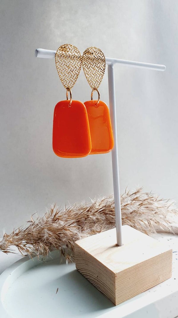 Prachtige eyecatcher, waarbij de polymeerklei is voorzien van een extra resin glanslaag. Superleuk met de goudkleurige rvs (stainless steel) oorsteker!