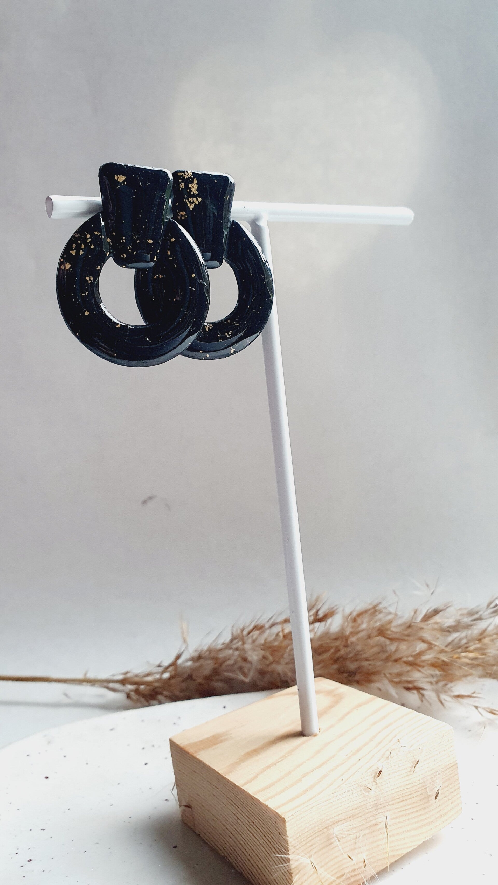 Door de zwarte polymeerklei is heel subtiel goudglitters verwerkt.