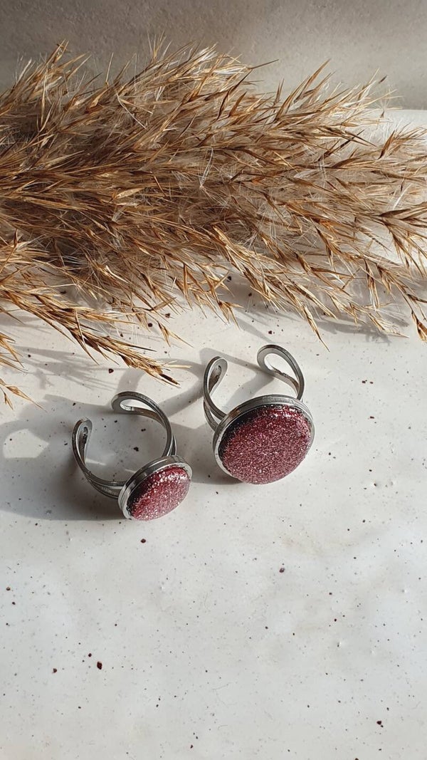 Ring RVS // bordeauxrood-glitters
