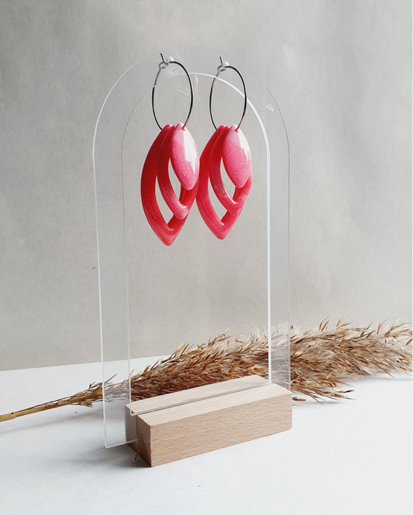Zo mooi, lichtroze met donkerroze uniek gemengd. Er zit ook een sparkle door de polymeerklei heen die mooi oplicht door de extra resin glanslaag die er overheen aangebracht is. Echt een eyecatcher om je outfit mee af te stylen!
