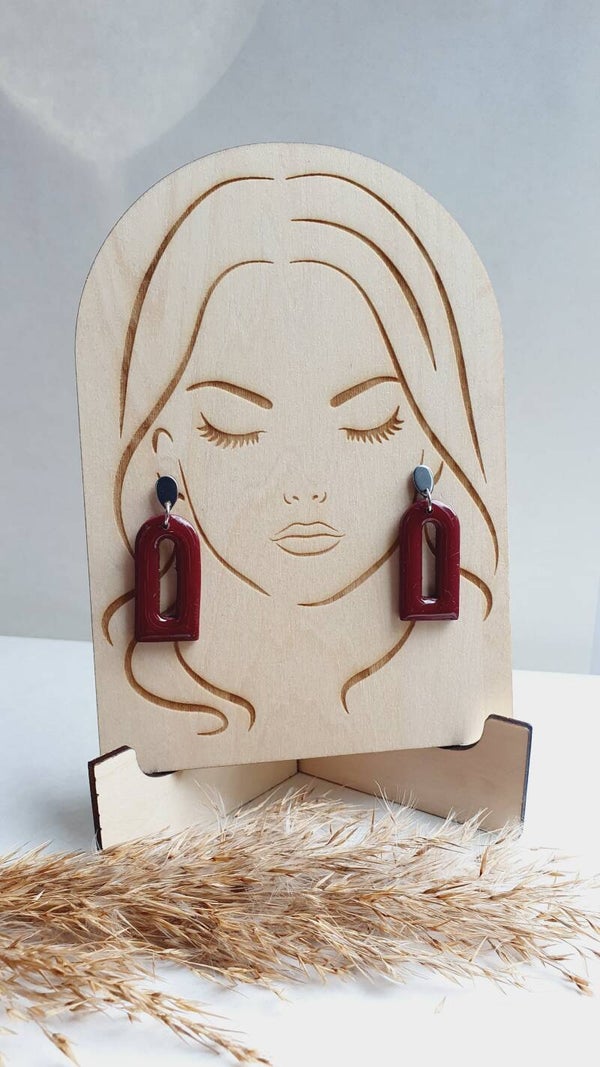 Subtiel en verfijnd. Een wat kleiner, maar tijdloos model in de prachtige modekleur van dit moment; bordeauxrood. De polymeerklei is voorzien van een extra resin glanslaag, wat de kleur nog mooier uit laat komen. Met zilverkleurige knopjes.