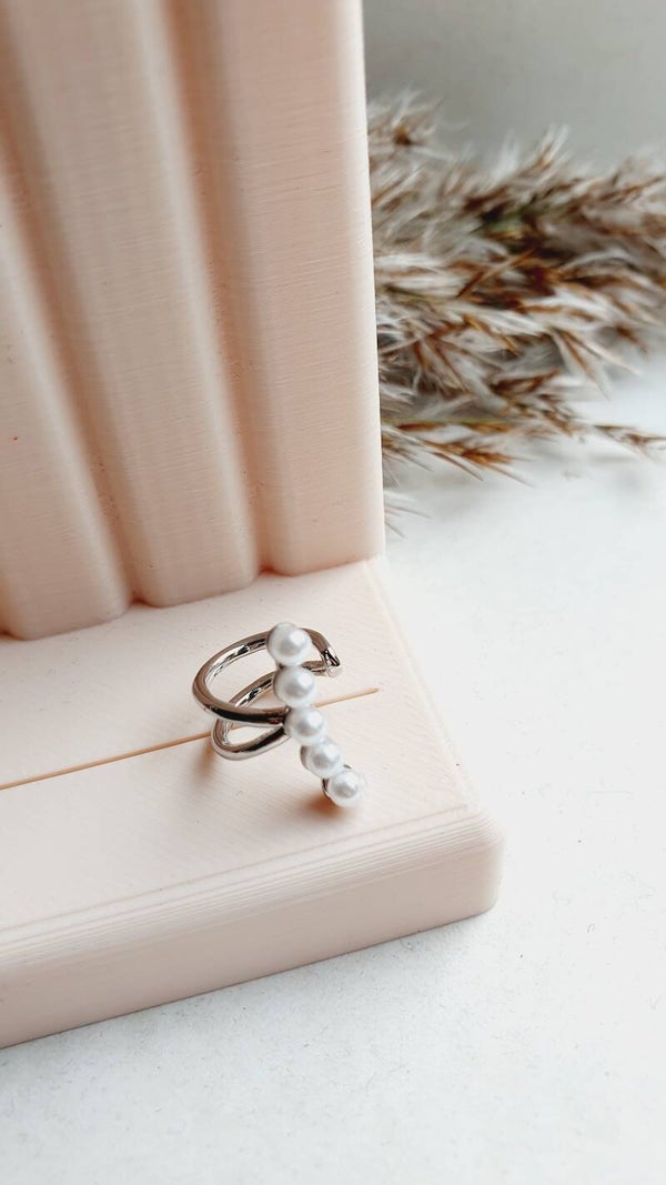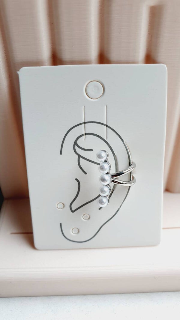 Ear cuff // Roestvrij stalen (RVS) stainless steel met imitatie parels silver-white