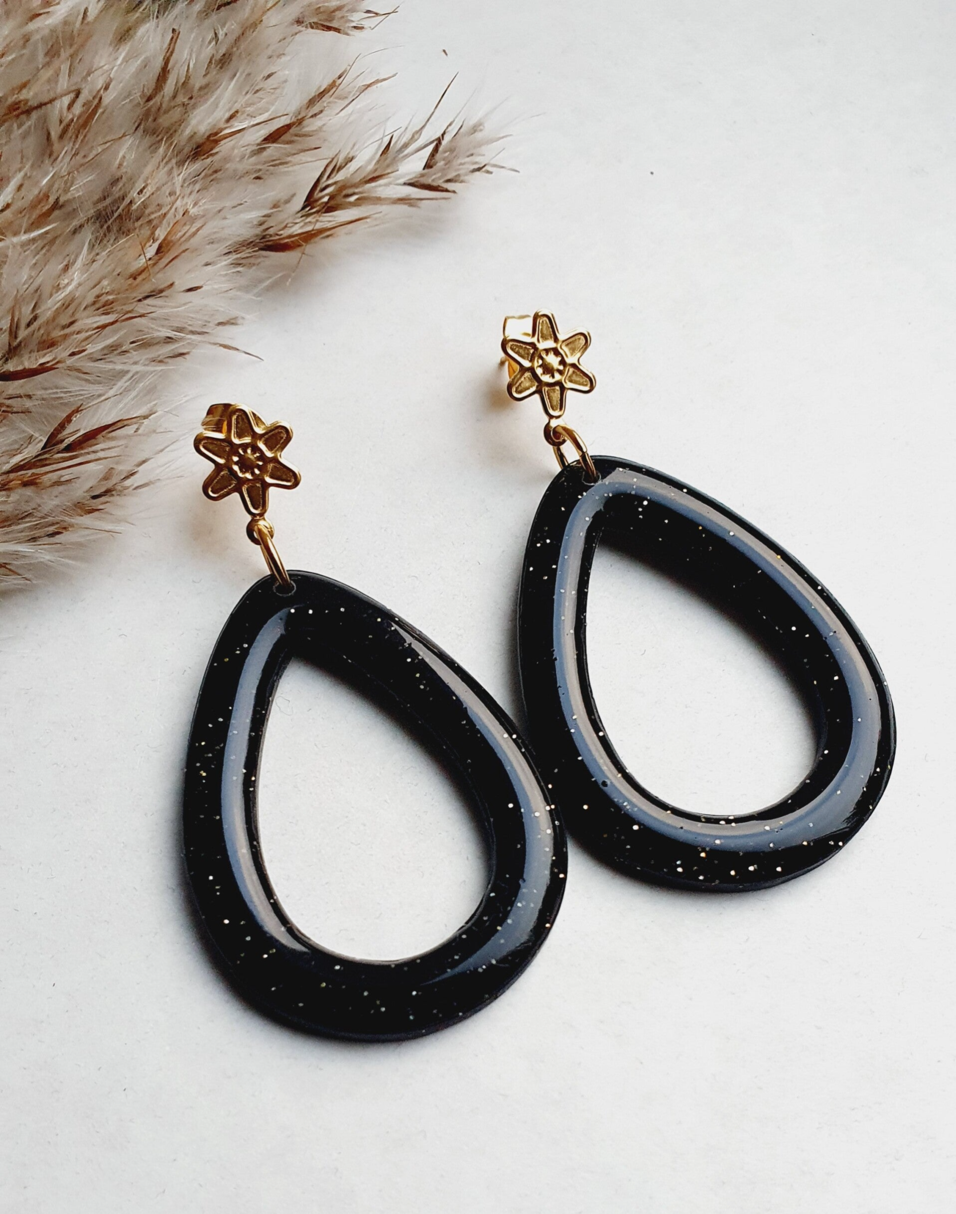 Door de polymeerklei is een subtiele goudglitter verwerkt en voorzien van een extra resin glanslaag.