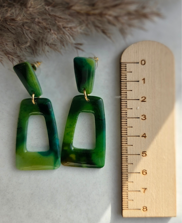 Stoer, maar elegant. Uniek door de mix van alcoholinkt gemengde, transparante polymeerklei. De resinlaag maakt de kleur nog dieper en mooier. De oorbellen zijn lichtgewicht. En ondanks de grootte voel je dus eigenlijk niet eens dat je ze in hebt.