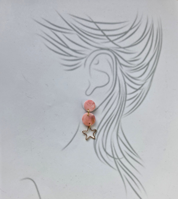 Uniek, speels en als de zon erop schijnt zie je een prachtige gouden gloed tevoorschijn komen. De alcoholinkt op de zachtroze polymeerklei met een laagje resin heeft een betoverend effect.