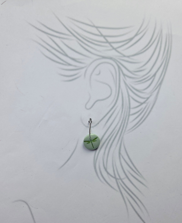 Een prachtige eenvoudige, stijlvolle oorbel. Handgemaakt van polymeerklei in mooie pastel trend kleur jade groen. De bedel is aan beide zijden voorzien van resin en lichtgewicht, waardoor je niet voelt dat je ze in hebt. De libelle is door micapoeder nog mooier zichtbaar.